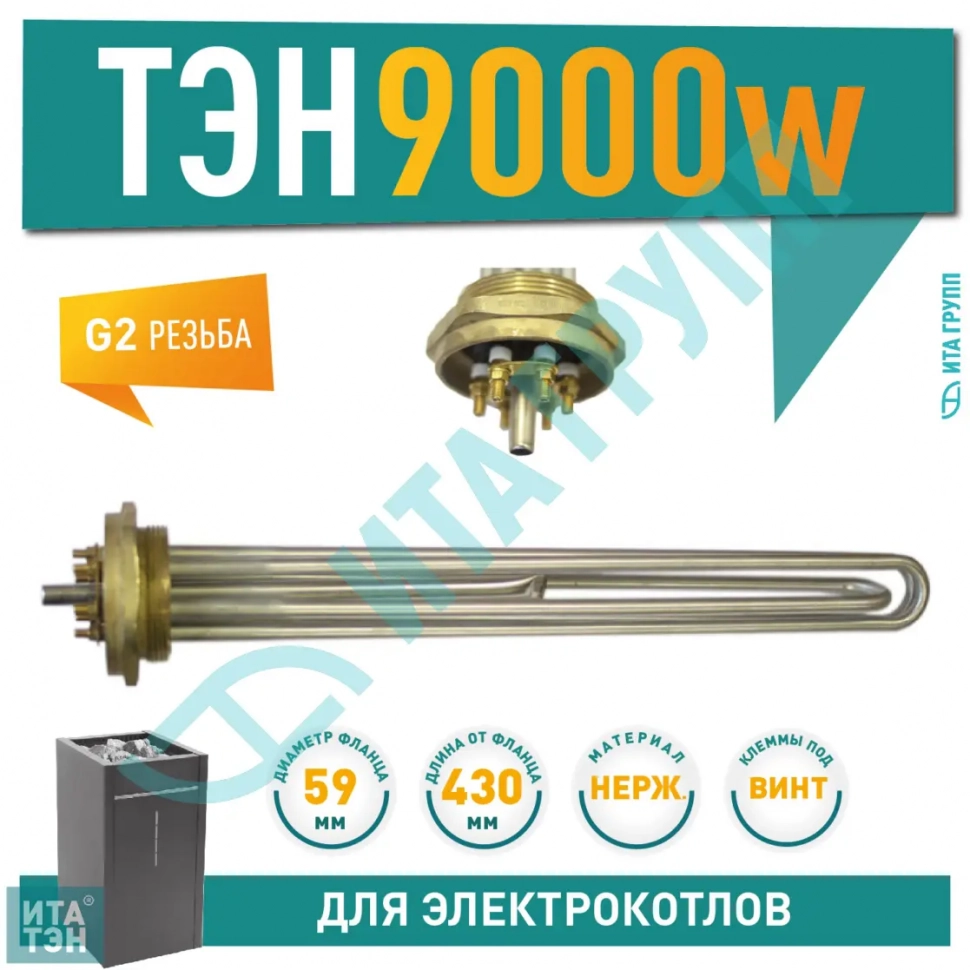 Общая мощность устройства составляет 9000 Вт, которая распределена на три греющие трубки по 3000 Вт каждая. ТЭН изготовлен из нержавеющей стали, что гарантирует его коррозийную стойкость и продлевает срок службы.