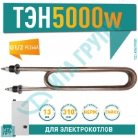 Электрический трубчатый нагревательный элемент (ТЭН) предназначен для эффективного нагрева воды и слабых растворов кислот и щелочей. Мощность устройства составляет 5000 Вт, что обеспечивает быстрый разогрев жидкости до необходимой температуры.